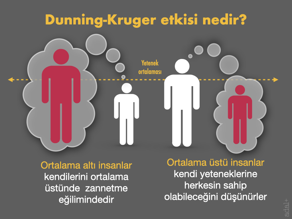 Dunning-Kruger etkisi genel olarak “insanların kendi yeteneklerini yanlış değerlendirme eğilimi içinde olduğunu” gösterir.  Daha açık ifade ile ortalamanın altında yetkinliğe sahip insanların, kendi düşük seviyedeki becerilerine aşırı değer biçme eğiliminde olduklarını ifade eder. Bunun yanında bir başka bulgu ise, yetkin olmayan insanların kendi yetersizliklerinin boyutunu görememe eğilimini işaret eder. Ayrıca yetkin olmayan insanların, yetkin olanlardaki beceriyi fark edebilme yeteneklerinin de düşük olduğunu göstermiştir.