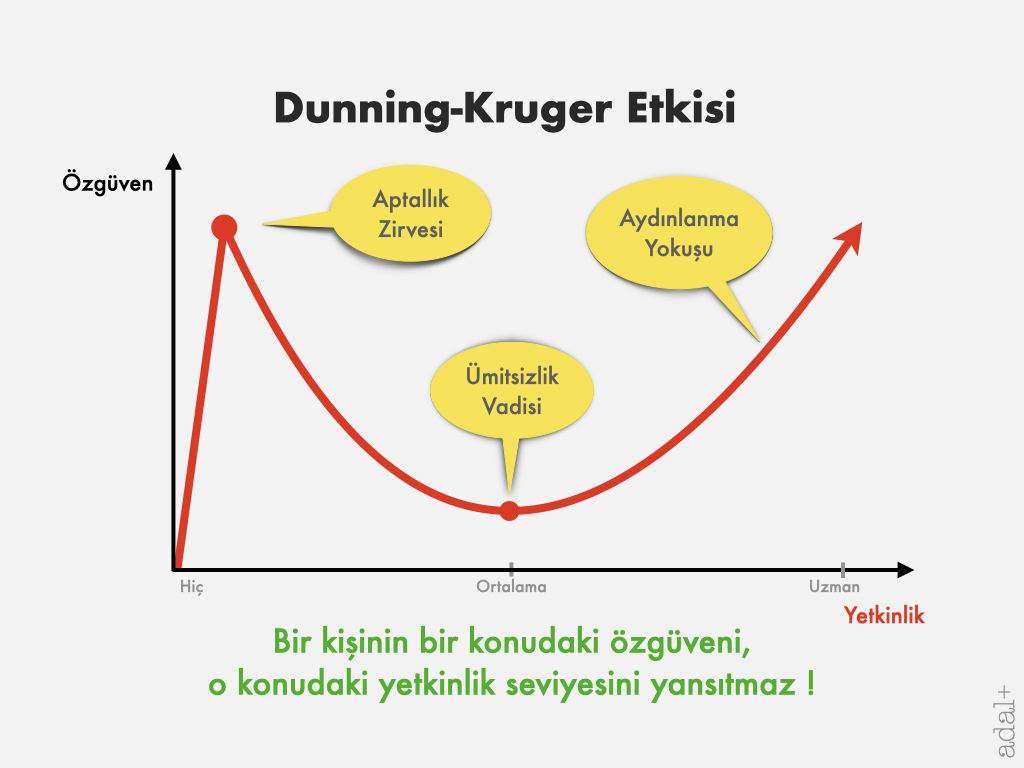 Türkçemizde, Dunning-Kruger Etkisini özetleyen çok güzel bir tanımlama var: “Fikri olmadan, zikri olmak” diye. Tam da aslında “cuk” diye oturuyor ve bu etkinin önemli bir kısmını çok güzel açıklıyor.