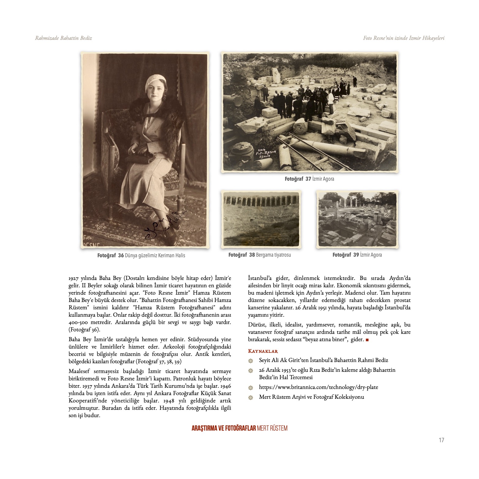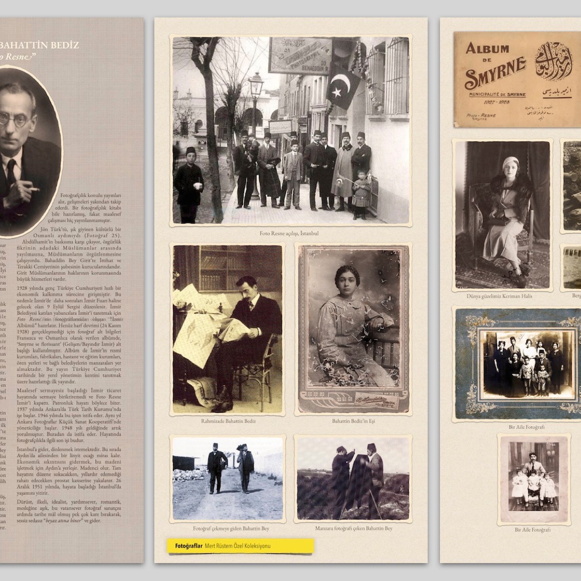 Bu sergiler kapsamında İzmir Belediyesi tarafından yayımlanan “İzmir Albümü” (Fotoğraf 1) Foto Resne’nin fotoğrafları ile sergiye katılan tüm yabancı heyetlere ve belediyelere takdim edilmiştir. Henüz harf devrimi (24 Kasım 1928) gerçekleşmediği için fotoğraf alt bilgileri Fransızca ve Osmanlıca olarak verilen albümde, ‘Smyrne se florissant’ (Gelişen/Bayındır İzmir) alt başlığı kullanılmıştır. Albüm de İzmir’in resmî kurumları, fabrikaları, hastane ve eğitim kurumları, ören yerleri ve bağlı belediyelerin manzaraları yer almaktadır. Fotoğrafları çeken Foto Resne’nin sahibi Bahattin Bediz’dir (1875-1951).