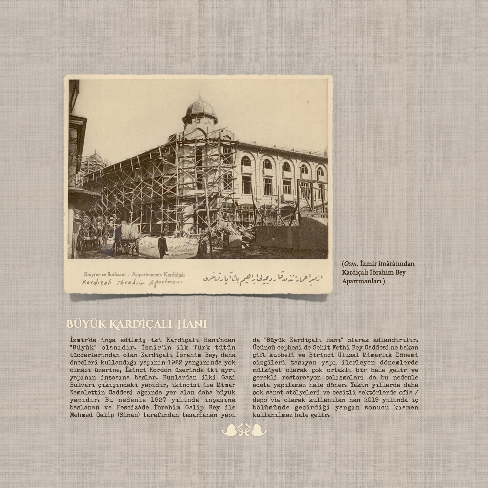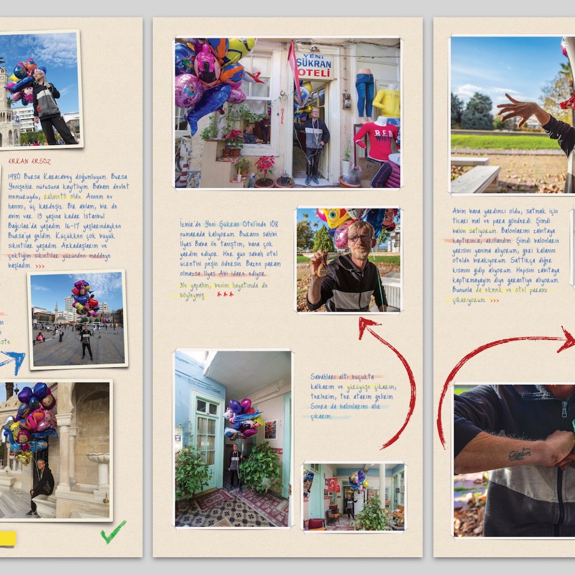 Sizleri, proje kapsamında hazırlanan kitabın sayfaları ve serginin panoları arasında dolaşırken o tarihi mekanlarda bugün yaşayan insanların foto-öykü formatında aktardığımız tanıklıklarımızı incelemeye, İzmir’in kent belleğindeki izleri keşfetmeye ve projeye emek koyan tüm ekibin heyecanlarını duyumsayacağınız görsel bir yolculuğa davet ediyoruz.