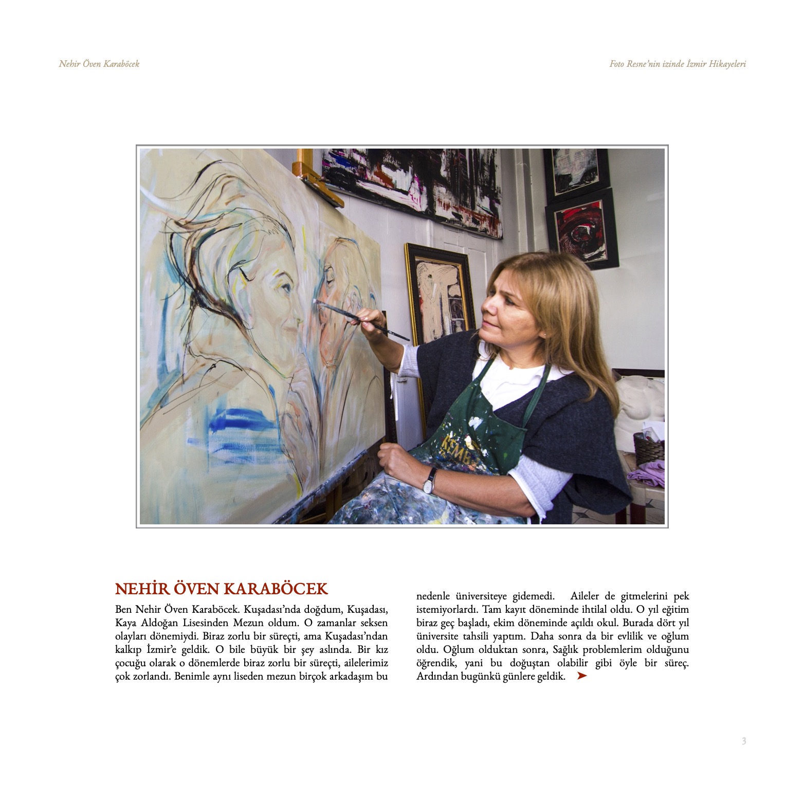Bu projede sunulan İzmir Hikayeleri, yaşam şartları ve dünya görüşleri açısından çok geniş bir yelpazeye yayılmış günümüz İzmirlilerinden bir kesit sunar. Yer verilen hikayelerin sahipleri muhtemelen birbirlerini hiç tanımıyorlar ve ilk defa bu kitapta yan yana buluştular. Hepsi İzmir’in başka bir rengi, başka bir çehresi, çokseslilikte uyum içinde tınlayan farklı bir notasıdır. Hepsinin ortak yönleri ise; bundan doksan yıl önce Bahattin Bediz’in fotoğrafladığı o tarihi mekanlarda bugün hala yaşıyor olması veya yaşamlarının bir şekilde o mekanlarla kesişmesidir.